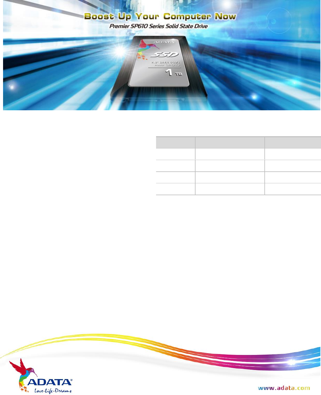 consumption, and competitive price, the SP610 lets you enjoy faster boot up and program loading than ever