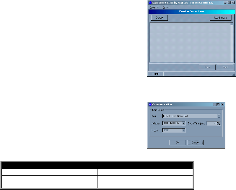 • Adapter: select the type of device (HART modem, ELink adapter, SAP-200 IrDA)